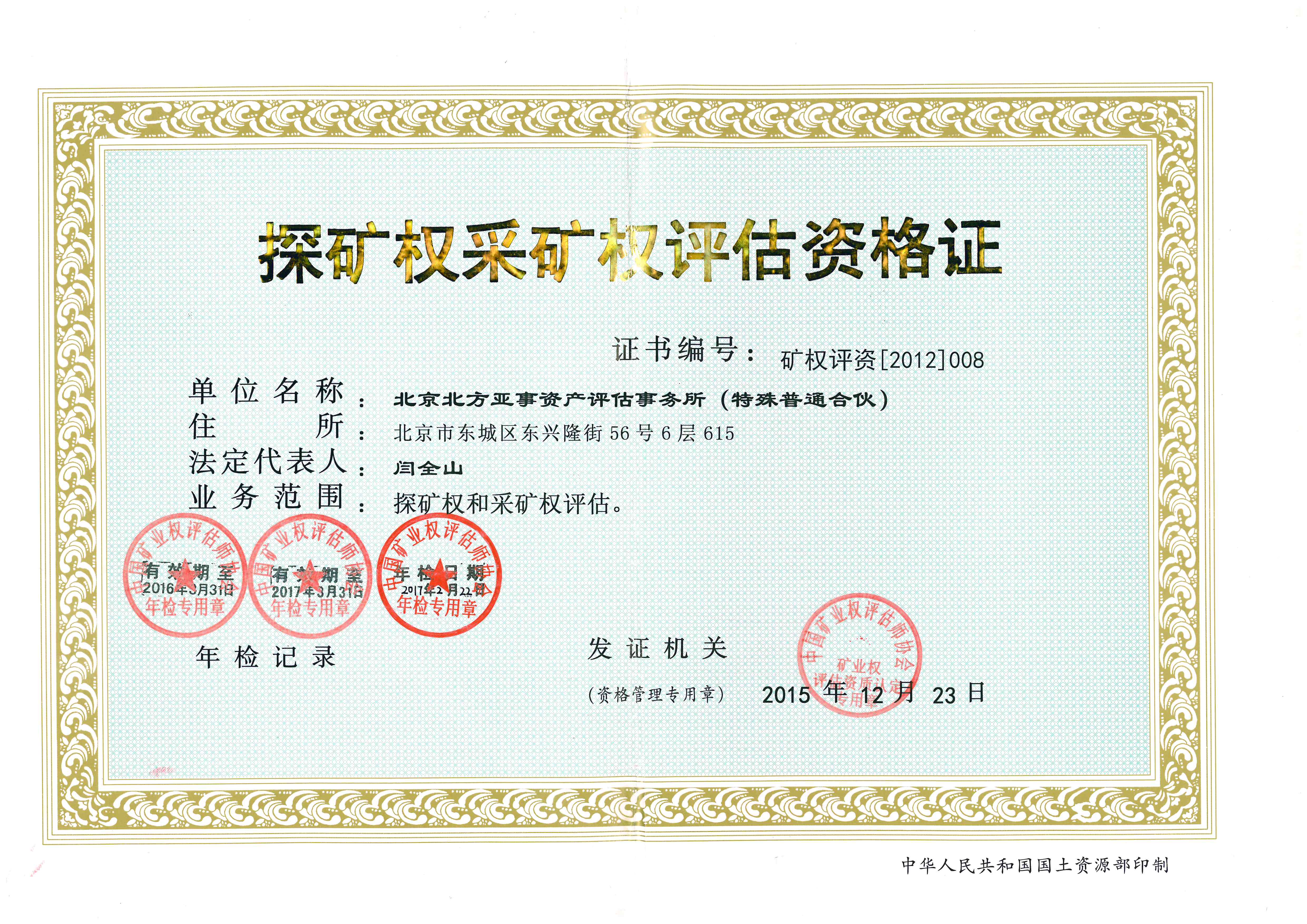 探礦權(quán)采礦權(quán)評(píng)估資格證書(shū)